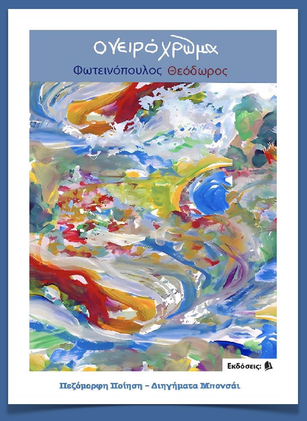 | Είδος έργου: Πεζόμορφη Ποίηση - Διηγήματα Μπονσάι Τίτλος έργου: Ονειρόχρωμα Συγγραφέας: Θεόδωρος Φωτεινόπουλος Αριθμός λέξεων ολοκληρωμένου έργου: 11891 Δημιουργία εξώφυλλου: Θεόδωρος Φωτεινόπουλος |